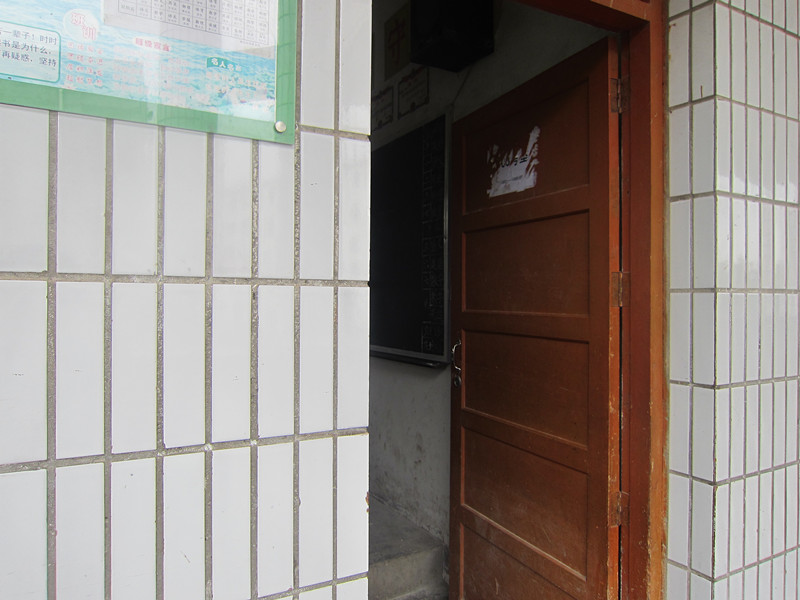 走上我们学校初中部新教学楼三楼,再向右转,第一个教室就是我们班。那橘红色的木门首先吸引你的目光,是不是看着很柔和呢?上去敲敲门,声音脆脆的。看到门旁的黑板上的课程表了吗?很普通但很精致,因为写课程表的值日生也很认真。门,课程表,还有那水泥讲台,构成了一个"门前金三角"了吧!