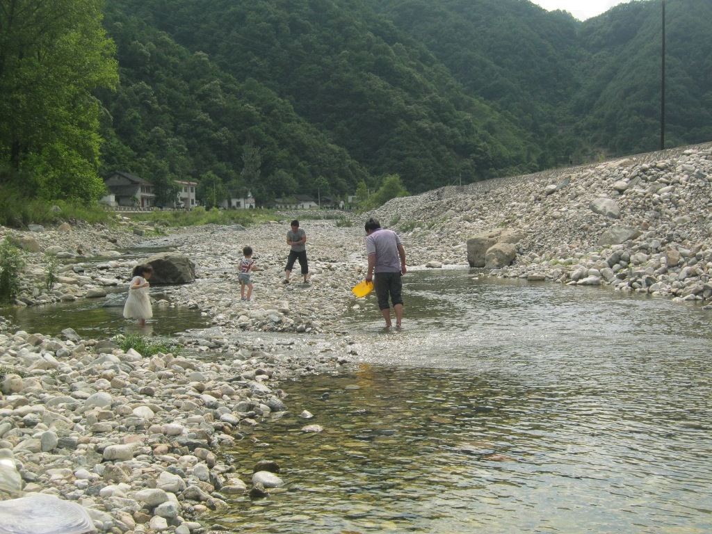 山下是一条宽阔却水不深的大河,河里有许多鱼。我们这些小孩子都起了玩心,非要去河里逮鱼。爸爸没办法只好跟我们一起去,后来看我们抓不到,就大显身手帮我们捉鱼。最后十条里边竟有九条都是爸爸捉的。 早上出发,下午六点才回了家。我们玩的都很开心。这真是愉快的一天。