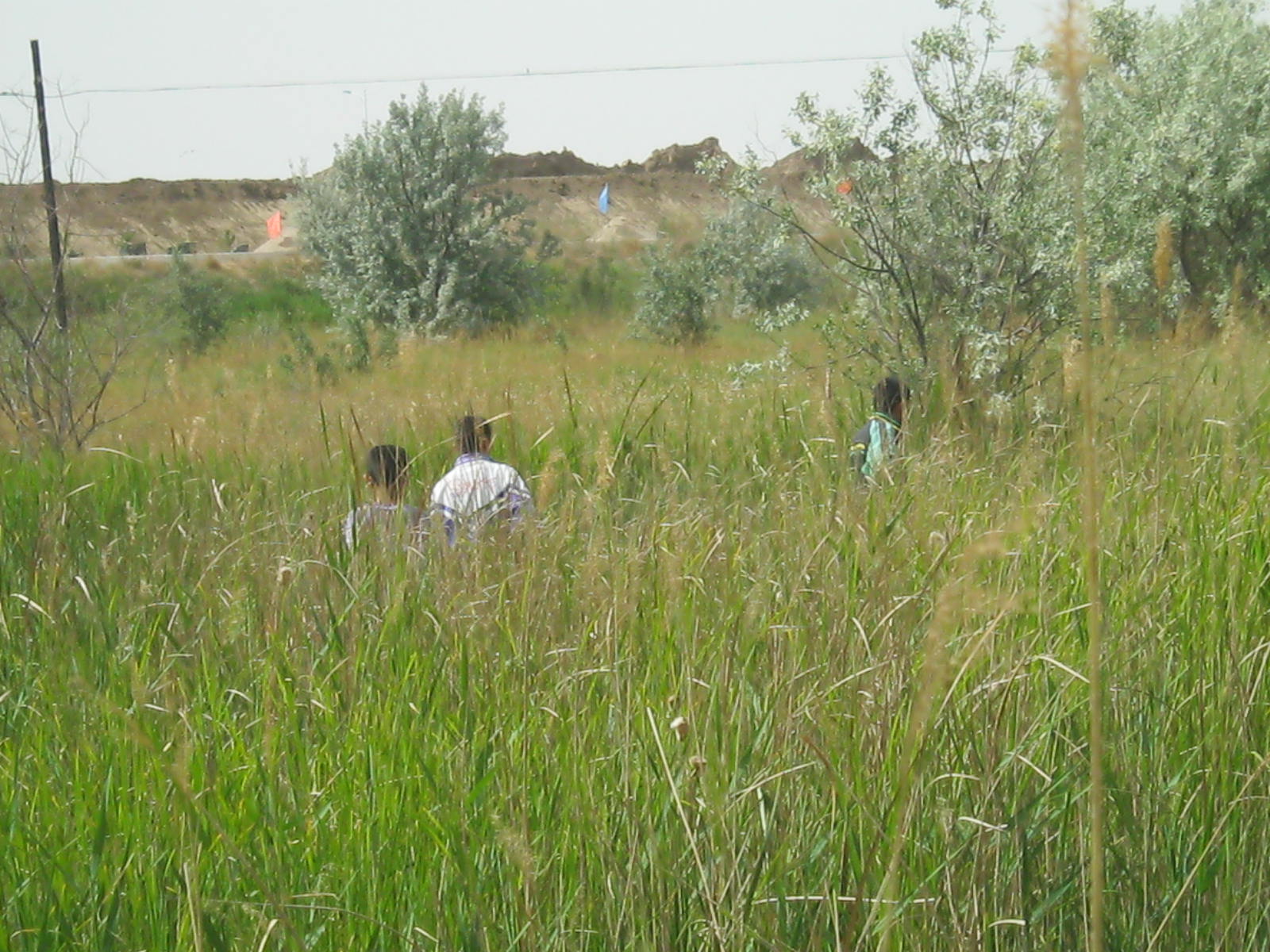 在另一位同学的指引下,我们来到了另一个有趣的地方。这是一个长满水草的深水沟,下面满是淤泥。小豆同学挽起裤腿,带领着其他人向水沟进发了,而我则孤零零的站在岸边,只因为那河底太扎脚了,走起路来实在不自在。