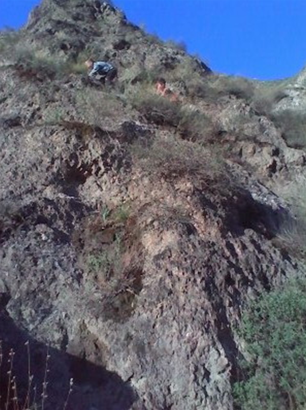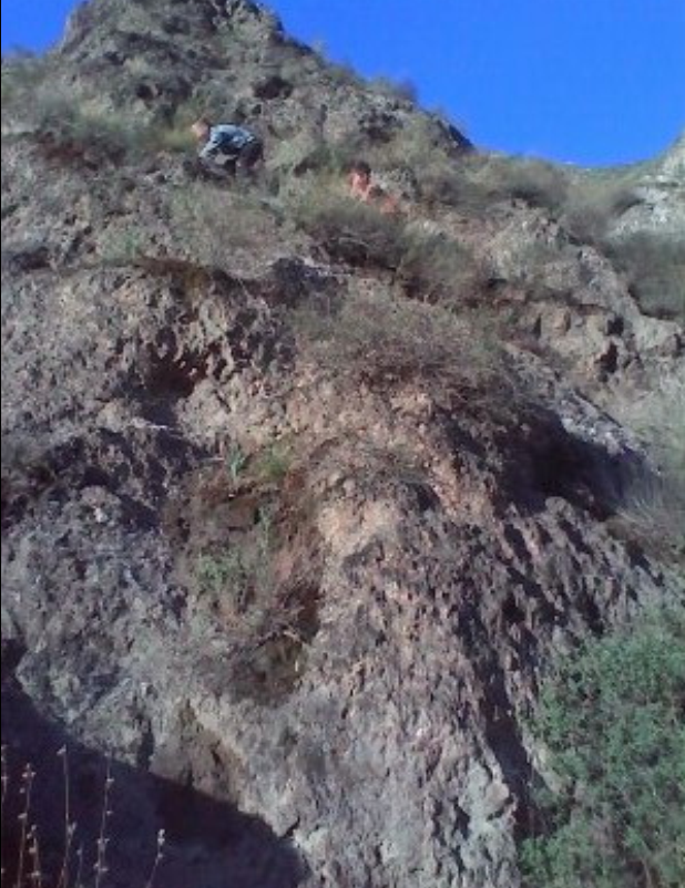 我们鼓足了勇气,慢慢得往上爬。刚开始,不是太费劲,可是爬着爬着就会吃不消了。山太陡峭,没地方休息,我们爬得满头大汗,爬着爬着,终于有一点空地足以落脚了,我们才敢停下来。这时,低头向下望去,实在是太高了,就像快要掉下去一样。有一丝丝凉风吹过,几棵小草在孤单的左右摇摆,也没有树可以乘凉。光秃秃的山上,看着有点凄凉,再也不敢向上爬,只好返回。