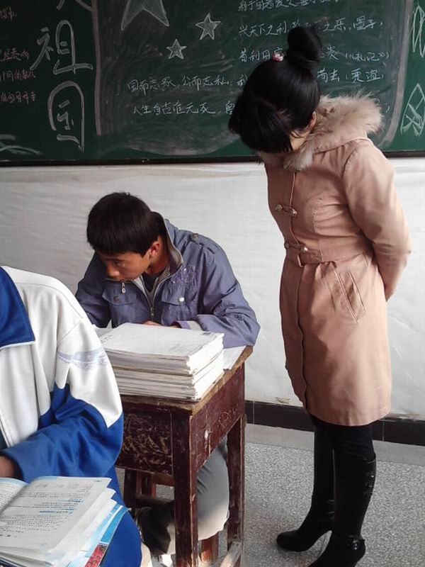 下课后任老师也不闲着,瞧,这会她正在给一位同学耐心的讲题呢! 这就是我们的任老师,你是不是也喜欢她呢?