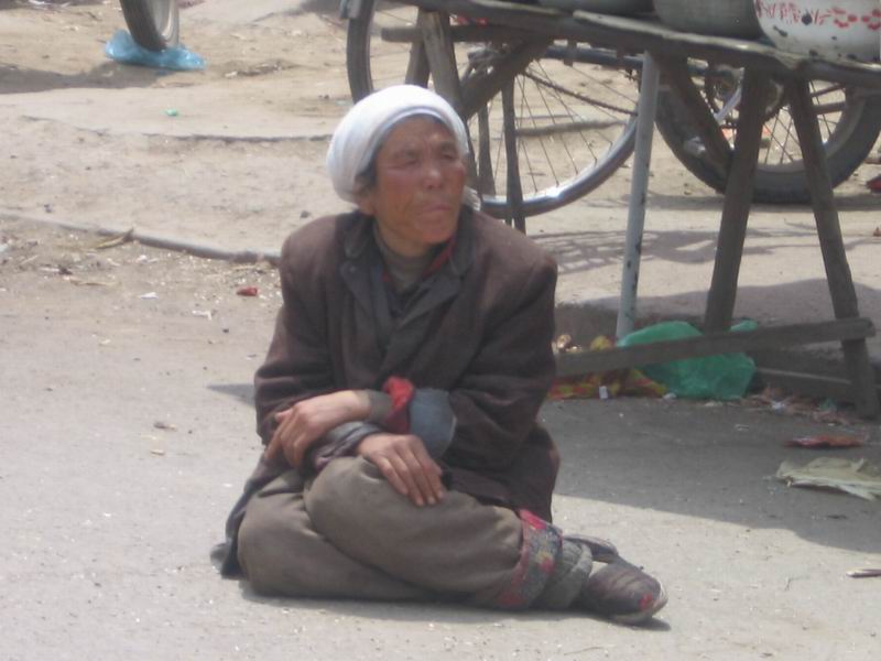 饥饿使她不再那样蹦跳了。一群群孩子见她是一个傻子,都用石子打她,但她并不生气,而是带有慈祥的面孔用吓唬的动作追赶他们!刚走到路中央腿一软跪在了路中央,向过往的车辆乞讨。为了过路,司机只好给他几毛钱。说她傻吧其实她并不傻,因为她也知道钱的好处。她拿着钱欣喜地观看着,车辆越聚越多,行人将两边围得水泄不通。这时这里吵成一片:有的用斥责的眼神看着她【行人】、有的用响亮的喉咙大声喊让开【司机】、有的则站在一旁用窥视的眼神看着她冷冷的笑着、有的则大大出手,用强而有力的两只胳膊,将她从马路上扔了出去。虽然她觉得非常痛,但饥饿使她忘记了疼痛,拿着钱买食物去了。