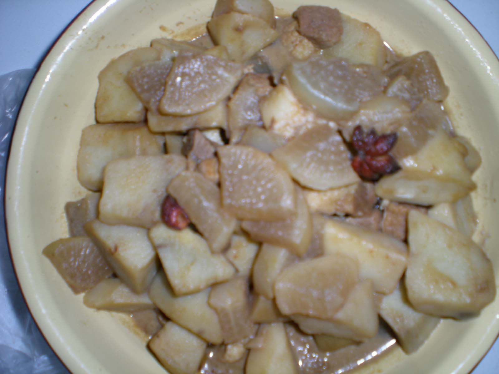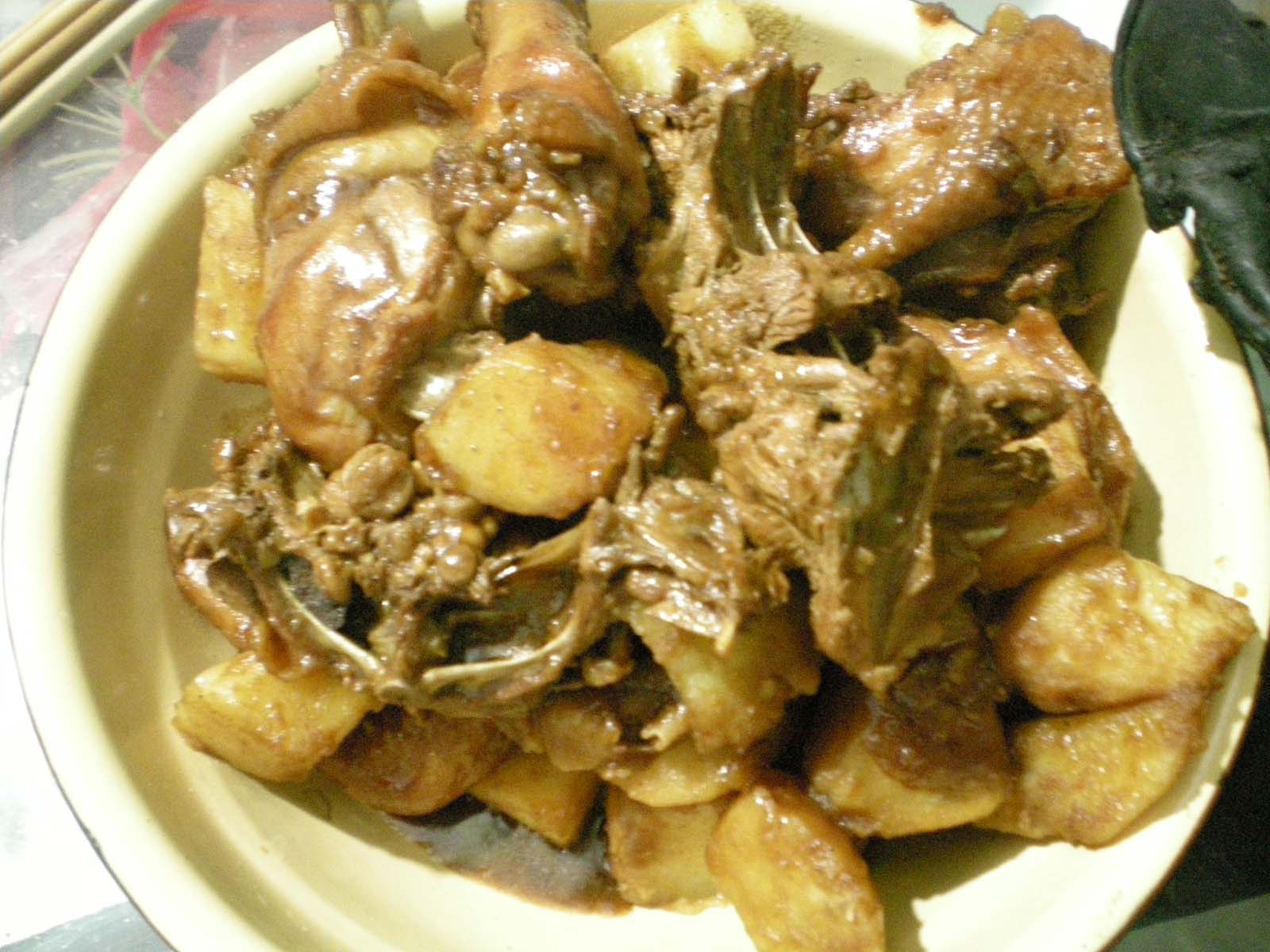 哈哈,今天又是休息日,爸爸亮出了自己的拿手好菜:牛肉炖土豆和方便面。太合我这只"猪猪"的口味了。