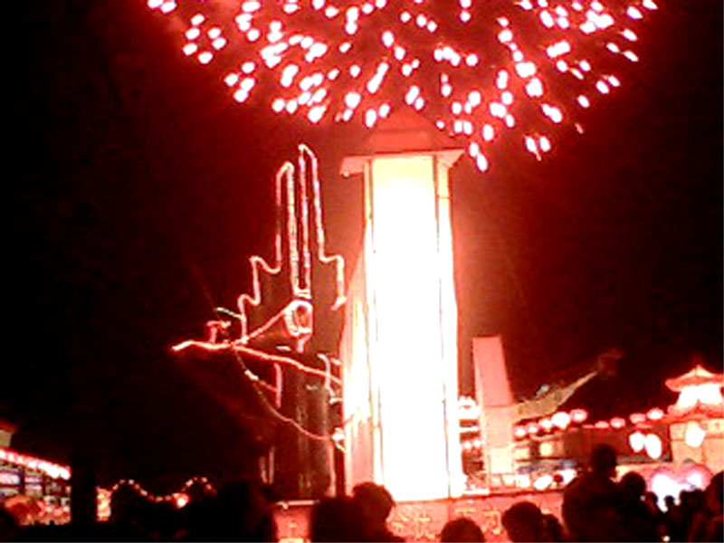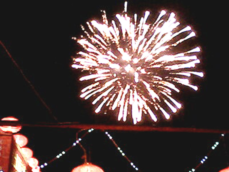 华灯初上,广场上五彩缤纷的花灯也通上电,亮起來了.有的在转,有的在閃,有的在動……照的整條平安東街光彩夺目,金碧辉煌。由于人多,即使广场的"肚子"在大,也未必能容的下这么多的人。因为今天晚上几乎整个中宁县的男女老少都会纷纷赶来看烟花,就在人摩肩接踵,熙熙攮攮地拥挤,谈笑时,烟花已经从迅雷不及掩而之势像几十,几百颗"炸弹"似的"爆炸"了。开始大家惊了一下,后来几万只眼睛齐刷刷地随着"炸弹"上天了,目不转睛的。的确,烟花的色彩及形状都挺可爱。有淡蓝色和白色的流星,一溜烟就窜上天去了;有粉色和绿色的"小老鼠"嗖"的在磨牙;有红色和绿色的"小花蕾",有白,黄,红色的三柱喷泉;有似乎透明的小水滴;还有橘黄色的"小蚂蚁"在爬来爬去……回想起去年我们也是很守时的在同一个地点看烟花,那烟花的形状还是那么可爱,颜色还是那么炫,唯一不同的是去年的"烟花节"却只有我和妹妹单独的度过,而爸爸和妈妈却因为有事……