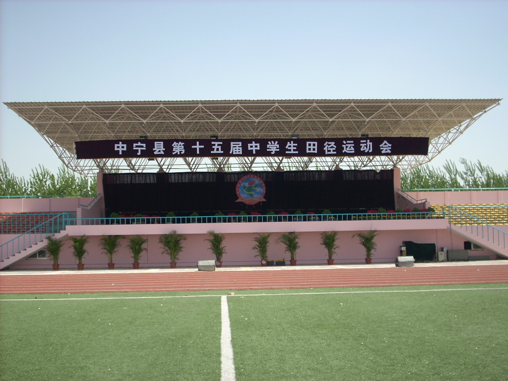 申奥成功以后,县政府我们学校投巨资建设了大型体育场,今天全县第十五届中学生运动会即将在这里召开。 看!醒目的横幅挂在宽大的主席台上方,中间是我们学校的校徽,多壮观呀!