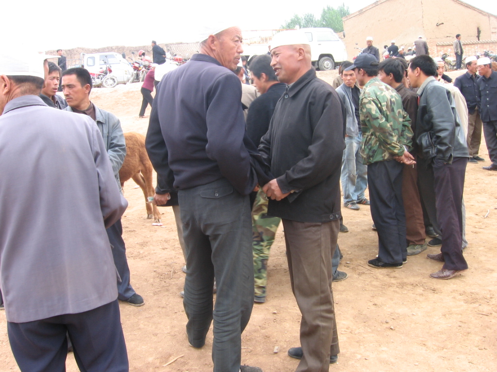 在人们出售的中间,当然得有个介绍的,称为交易员。他可以在买主和卖主之间评个让双方都感到满意的价钱,这种活也可以赚到5-10元。如果当你走进牛羊市场时,这得有经验的看一看。选材料时,不要选最肥的和最瘦的。必要的时候也可以谈谈价钱,这回用到交易员了,先要问问卖主的价格和买主出的价格,大多数老乡还会摸价。一般由卖主用衣襟把手盖住,比划价格。买主摸价,然后可以谈商。