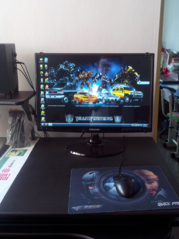 就它的相貌而言,它由五个兄弟组成,分别是:显示器、鼠标、键盘、主机、音箱。显示器它的作用是来显示桌面的;鼠标很小,就跟老鼠一样,它的作用是快速指导要用的软件;主机的个头很大也很胖,但它的作用很大,是电脑的心脏,用来处理信息和执行命令;音箱就不用我说了吧,它是来播放音乐的。