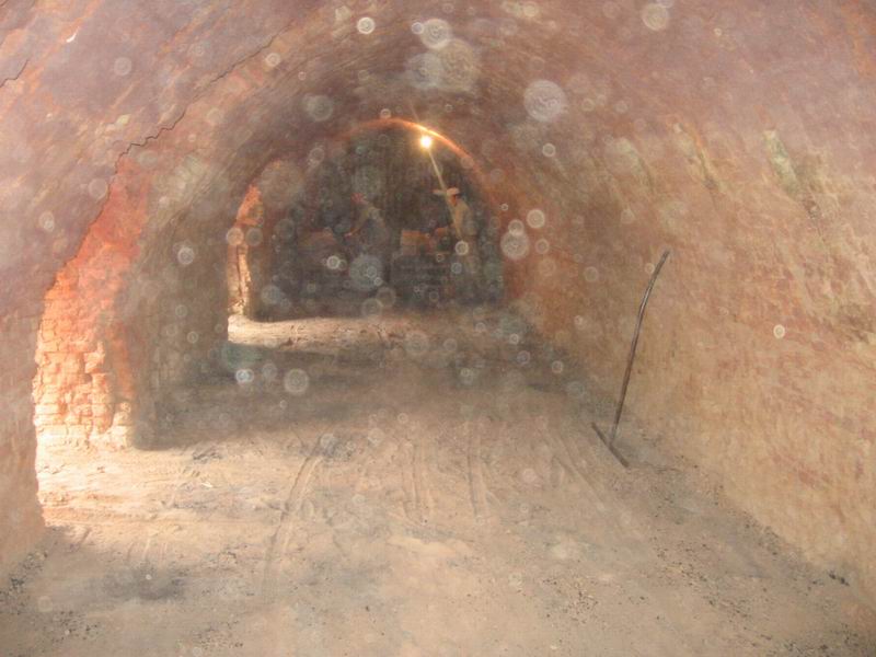下来就让我给你讲讲窑吧!他总共有20个窑门,一窑能少好几万砖呢。它的里面呈圆形,而顶部是平的。里面由于烧砖的缘故,特别的热。它的顶部有专门烧砖的小圆铁孔。把炭加入那里面,就进行烧了。当然也要封住窑门。