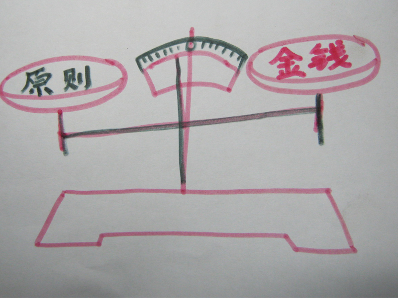 我爸爸看见了,就生起了怜悯之心,他从口袋里掏出一张10元钱,让我交给乞丐。我拿上钱跑出去,把十元钱递给那个乞丐。那个乞丐盯着10元钱却不伸手接,喃喃地说:"我只要零钱。"我听了心想:这个乞丐真是傻,有了整钱,一花不就有了零钱了吗?看着他那呆呆傻傻的样子,我只好跑到小卖部给他破开了。我对他说:"你等一会儿。"然后就去小卖部买了一些零食,跑回来递给他四张一元的,他看见那一元的票子,立刻笑容满面,他高兴地接过钱,一一数过。忽然,他收敛了笑容,眉头拧成一个疙瘩说:"这是四元钱,不要这么多,我只要三元。虽然我只是个乞丐,但是我也是有原则的,我跟人要钱,人们要是不给我从不强求,要是给的多了,我也不要。我一次最多只要三元。多给了绝不要。"说完,他把四元钱塞进我的手里,头也不回地走了。
