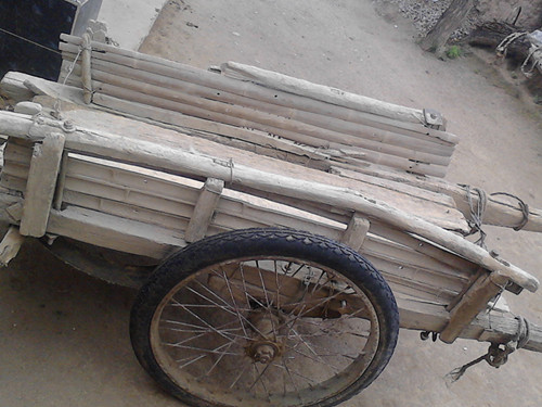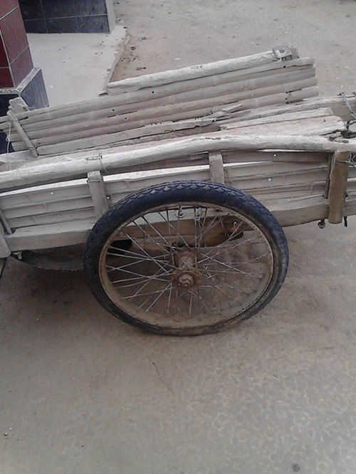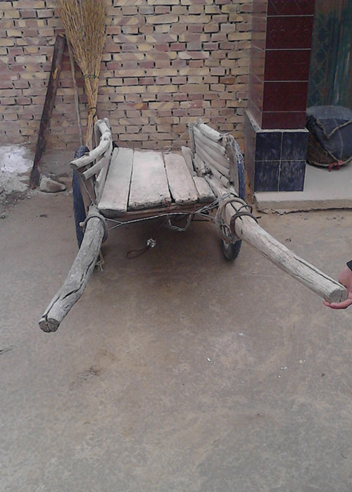 架子车这种农具只有我们农村有,在十年以前架子车是当地农民主要的运输工具,每家每户基本上都有架子车,不论是往地里运肥料还是拉麦子都得用到它。