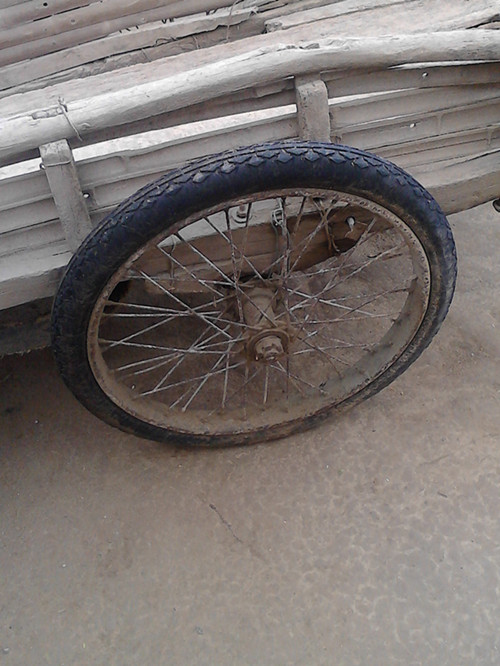我们家目前还没有拖拉机等农用车,所以这个架子车还承担着我们家运输农作物的重要任务,所以爷爷平时没有事的时候就看看车上是否有修补的地方,爷爷总是能够及时的修好它。