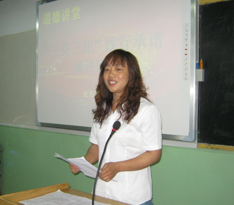 下面进行的是八位教师的演讲比赛,他们有的激情澎湃、有的诉说质朴、有的风趣幽默,我们班主任曾老师是第二个演讲,她满含深情,娓娓道来,演讲得特别好。结果,曾老师得了一等奖。