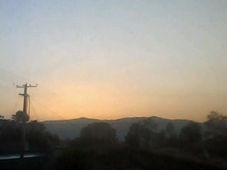 东方的天空上,朝霞是橙黄色的,它有厚有薄,有深有浅,有浓有淡,层次分明。在它周围,有一小片粉色的云烟,一些浅蓝色的天空和一大片黑黑的乌云点缀着它。