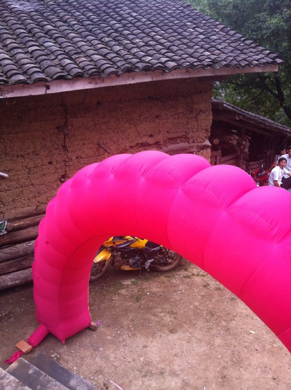 接下来是最有意思的吃酒席,因为我们已经爬了很远的山路。早已经是饥肠辘辘,迫不及待想要品尝美味的鸡鸭鱼肉了。农村吃酒席的场面可谓壮观,在一个很大的场院里搭上帐篷,摆上十张酒菜,大家一边吃一边谈天说地,气氛很是融洽。敬酒的一对新人在大伙儿的祝福声中笑的不亦乐乎。