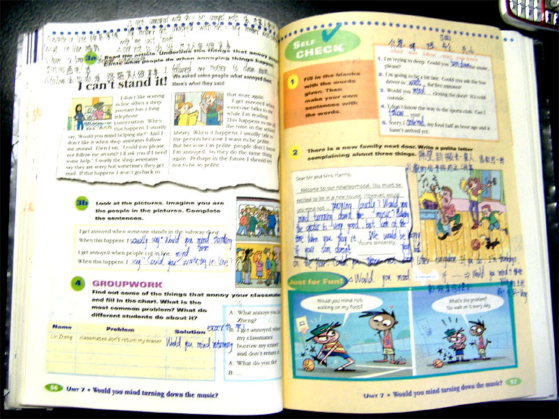 我们的班级体很和谐,每个同学之间都会互助护利,从不吵闹。刚到新班总有点不习惯。每天早晨6点就得起床,收拾完来到学校要读课文,背单词,画图等,总之,不管怎么挤时间就是不够用。中午回家还要带上没做完的作业,这样还可以多做些,再节省点时间做其他的作业。下午放学比较迟,再加上十几门功课的作业,几乎每天我都要用两个小时才能做完。