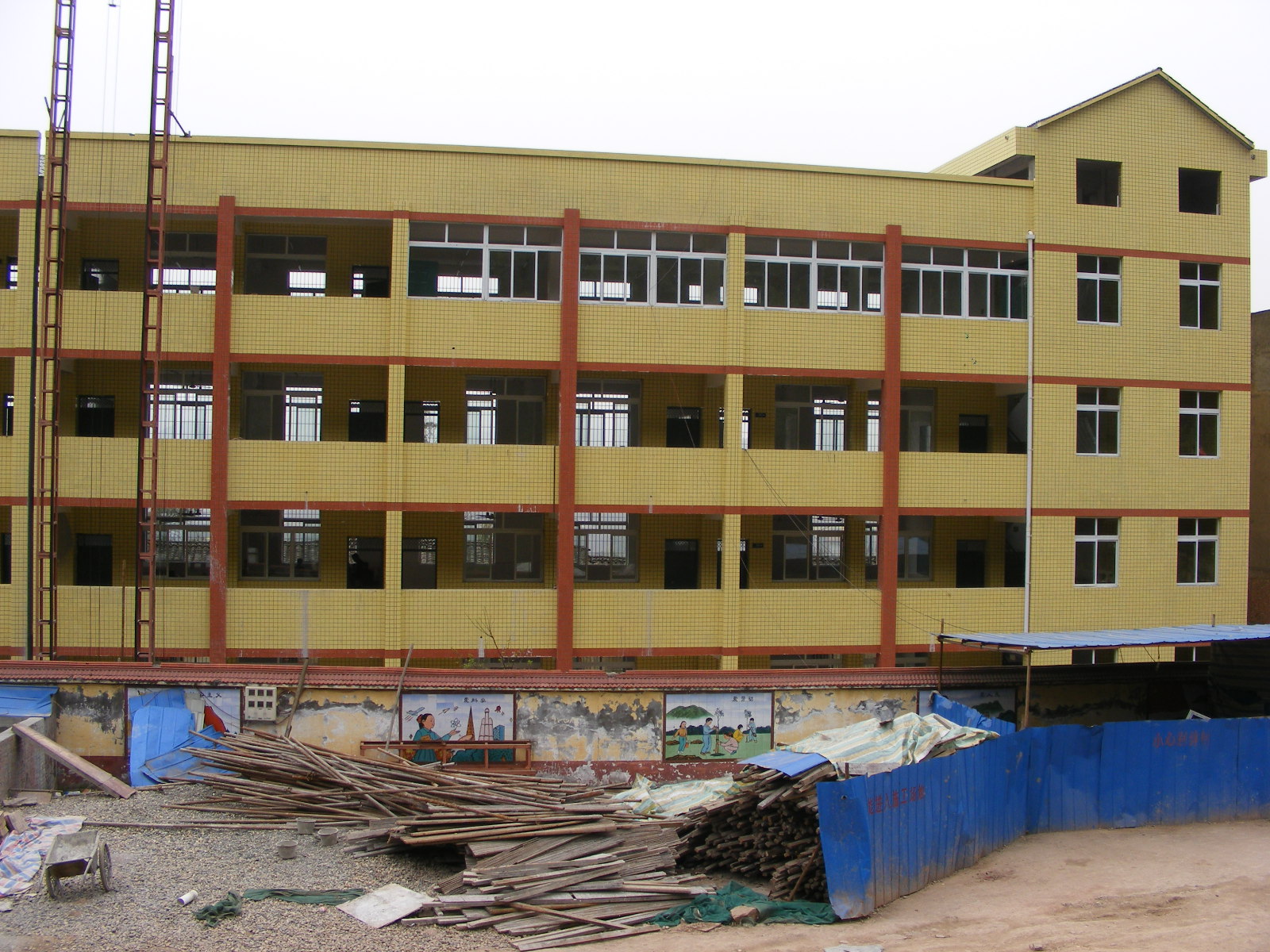 女生公寓右边有一棵高大的皂角树,树旁有一条约十米宽的通道。通过这条通道,便来到了内操场。内操场看起来就要凌乱一些,因为学校的建修还没有彻底完工,所以还有许多的建筑垃圾。对了,还没有向你介绍呢,内操场临街的一边是教师办公楼和我们的新教学楼,尤其是新教学楼,因为它的颜色是淡黄色的,再加上有四楼,所以在很远的地方都能看到它,应该是它就是我们学校的一栋标志性建筑吧。在皂角树的对面是原来小学部的教学楼,目前由于所有的班级都搬一新教学楼了,所以那栋小学部教学楼基本上完成了它的历史使命,至于它以后的作用,我也不清楚。