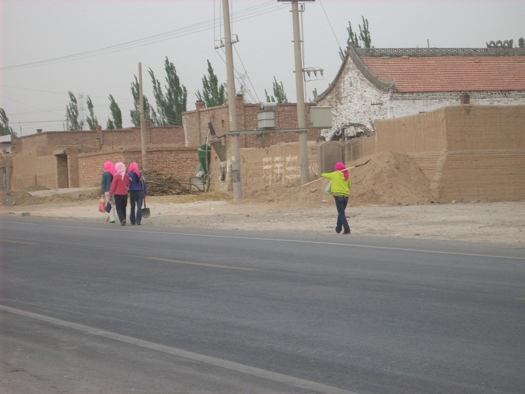这几个妇女被雇佣者雇佣了,你看她们有说有笑的随着老板前往工点。对于我们这里移民调庄的人而言,每天的工作就是出外打工,打不上工就只能闲呆一天了,因为他们没有土地也没有牛羊。