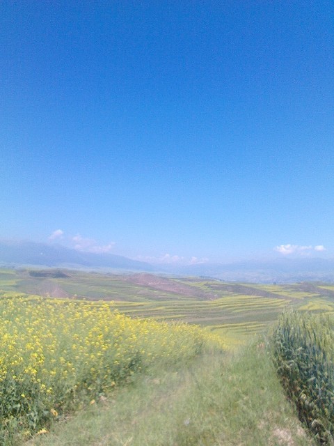 虽然这荒凉的大西北没有内地的繁华,没有内地的发达,但只要有头顶这片蔚蓝天空就已足够了。只要抬头望着那蔚蓝的天空,它会让你忘记一切不快,一切烦恼,一切忧郁。蔚蓝的天空那么辽阔,望着它你的心胸便会像那那蓝天一样开阔,你的心情会像那洁白的白云没有任何杂念,没有任何负担愉悦美好。