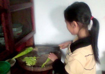 妈妈走后,我看了一会儿电视,快到十一点了,我将米淘好,放在电饭煲里。正准备去玩时,看见了放在桌子上的蔬菜。心想:妈妈为什么不让我切菜呢?肯定是不相信我!我非得证明给她看不可。于是,带着几分想试试的心理,准备切菜了。