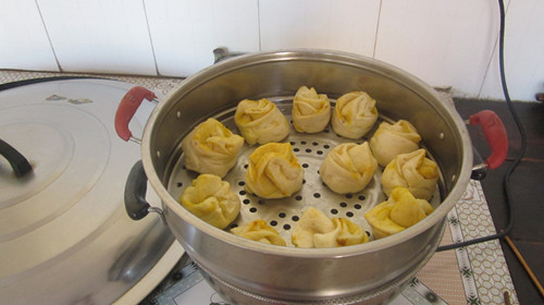 我忐忑不安的等待着,真担心蒸出来的是一锅硬疙瘩,半小时后我小心翼翼的揭开锅盖-----老天保佑!锅里是一个个白白胖胖的馒头乐得咧开了嘴,我的心里也乐开了花,我终于会做馍馍了!