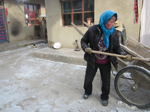 看着这么大一块地,我真是满腔热血,无法沸腾起来呀!我们一家四口人,我压土,爸打药,妈撒肥料,弟拉地膜,在一片埋怨中,我们开始了劳作,刚开始,弟弟拉地膜,我在他的前,由于土没有压好,所以压到正中间的时候,风一吹,地膜像娃娃嘴似的一张一合,又回去压了好几遍。我们越来越带劲,所以压的很快,压完之后再看看我们一个个灰头土脸,哈哈……,“我们家的笑声传的好远。