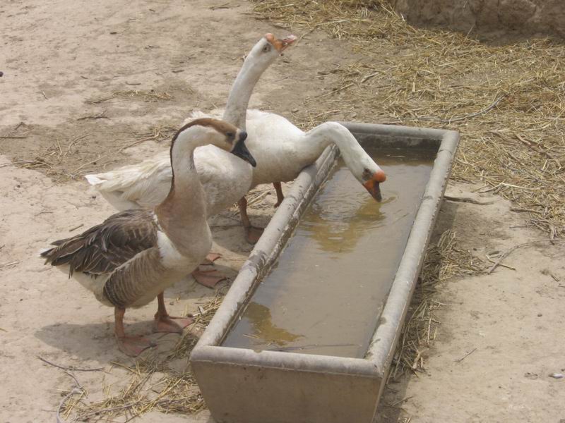 鹅吃饭时,一日三餐,每次吃时要一碗饭,一碗水,吃一口饭,喝一口饭,走起路来遥遥摆摆,好像很骄傲的样子。