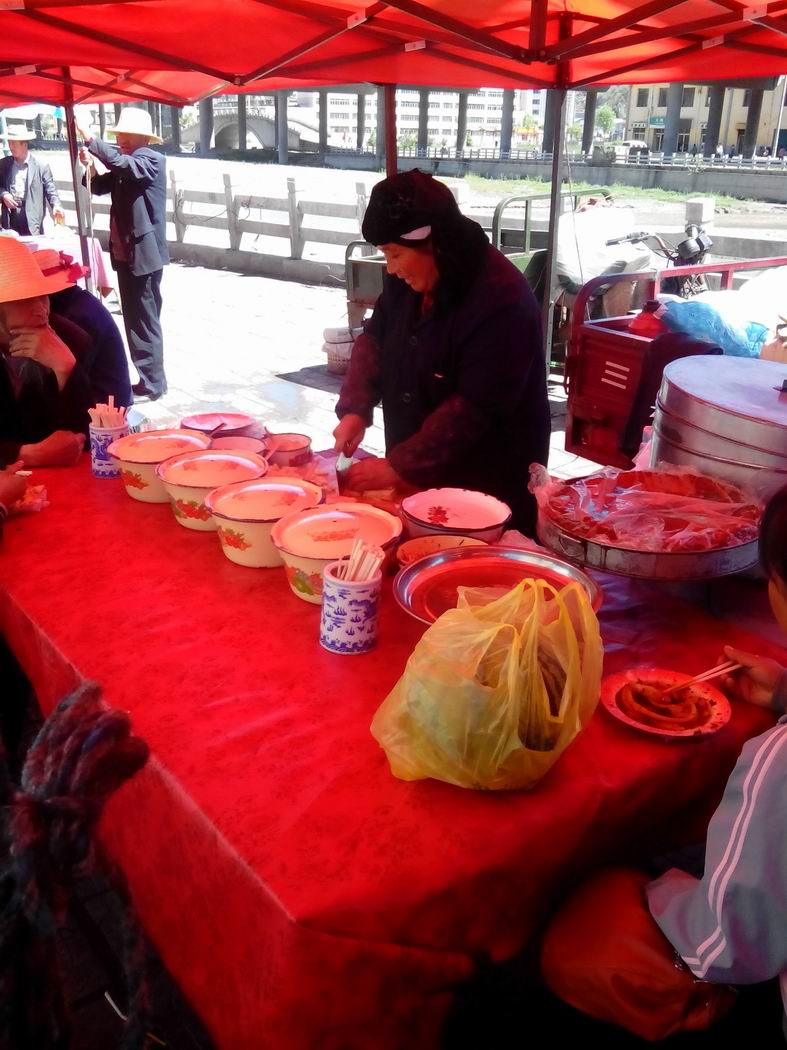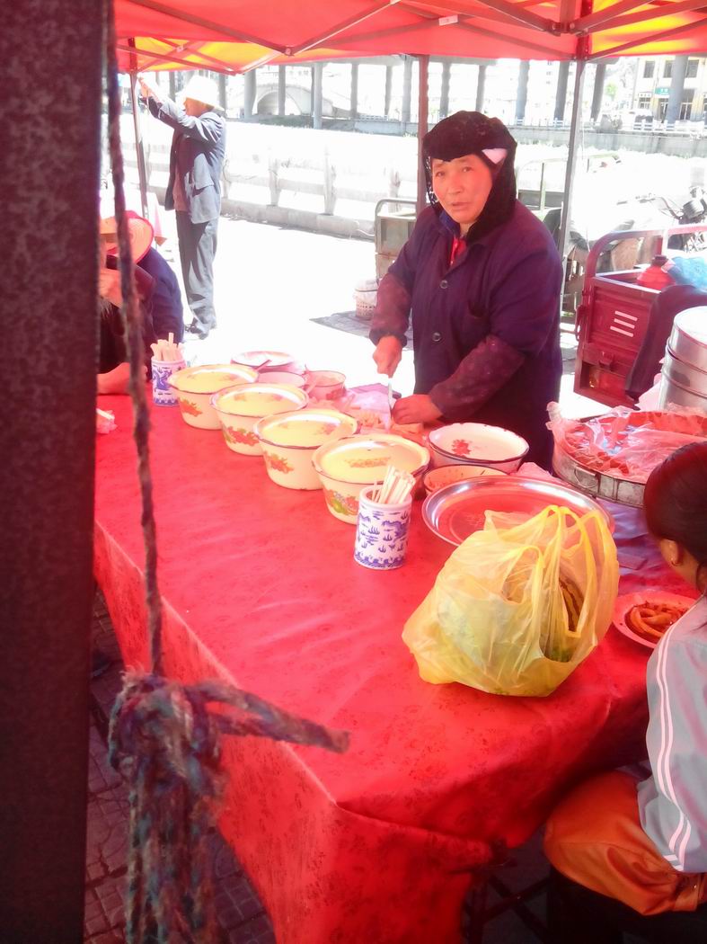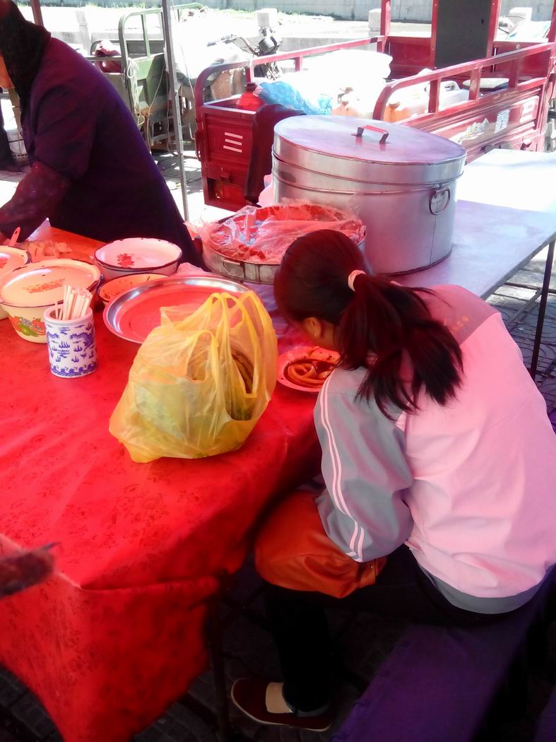 如果你走了远路,又困又累,那就请来到这里,往凉棚下一坐,热情好客的回族阿娘就会说:"扎佐哈,扎凉快。"意思就是"坐到这里,这里凉快",要上一碗酿皮,多调点油泼辣子和湟源的老陈醋,配上韭菜的香味,夹一块放到嘴里,再闷热的天也会被赶跑。