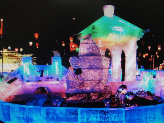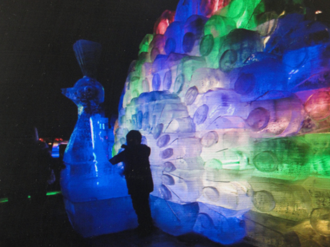 放假了,我们一家到西宁的叔叔家玩,爸爸妈妈和叔叔去了亲戚家,我和妹妹就来到西宁人民公园,正好赶上公园的冰雕展。真美丽的冰雕啊,宫殿似的大冰雕,周围有许多的花盆。花盆里有许多的美丽的花,而那些花就是来装饰那个宫殿似的大冰雕的。晶莹剔透的大冰雕在花朵的衬托下,显得格外美丽。