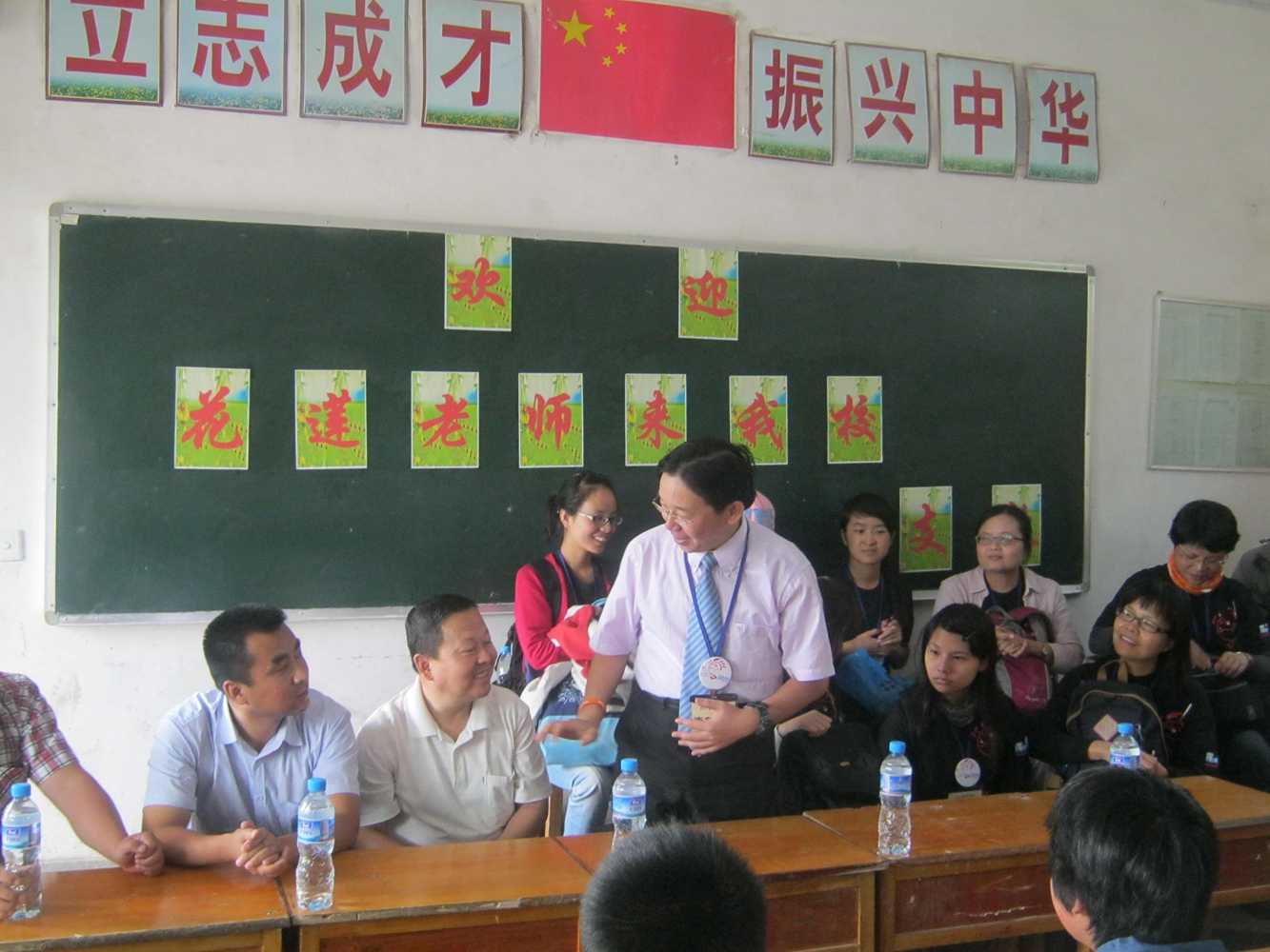 活动在台湾花莲飞扬青少年成长中心唐校长幽默风趣的讲话和三个简单而有寓意的动作下拉开了帷幕,并在短时间内将活动推向了高潮。唐校长还在马云的一句名言“你的梦想有多大,你的世界就有多大”的启发下,告诉了学生首先要打开自己宽敞的心,在自己脚踏实地的行动下,通过坚定地信念实现自己的梦想。