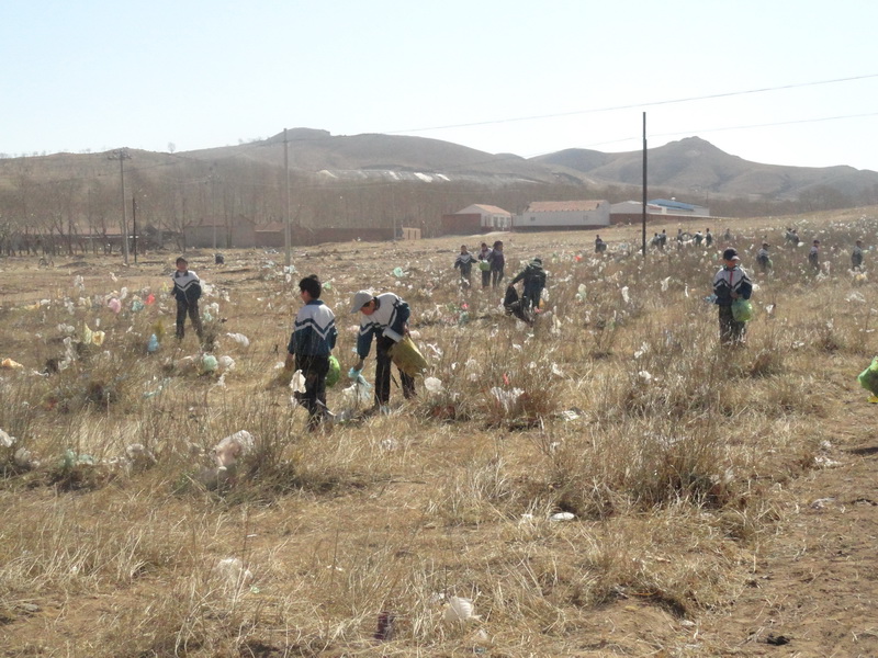 天空格外地晴朗,阳光柔和地洒在我们每个人的身上,偶尔吹来一股凉风,风中夹杂着泥土的味道。经过一段时间的行走,我们终于到了半坡山。向四周环视一圈,眼前的景象让我惊呆了,贫瘠的黄土地上到处是白色垃圾,无精打采的枸杞树上披挂着令人讨厌的塑料袋。