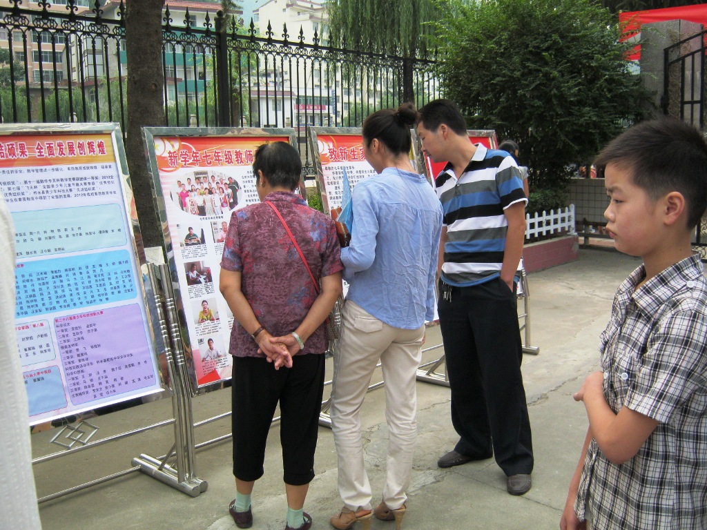 此时,校门口外新生的家长也仔细的看着学校的宣传报,从而更好地了解学校的状况。 开学第一天就在紧张热闹的气氛中结束了,我相信我们在新的学期里会有新的进步,会有新的提高。也相信那些新同学能在乾佑中学中茁壮成长。乾佑中学也将会有更美好的明天!