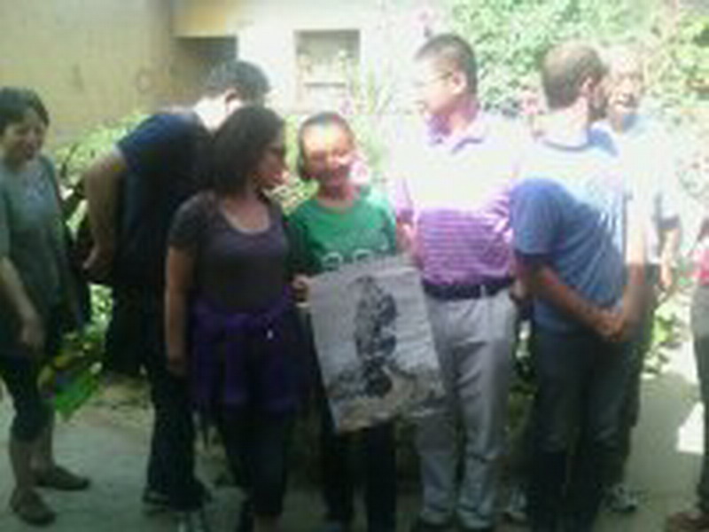 最后,她们发现了我墙壁上挂的我画的画—鹰,并让我把画送给他们做个纪念,还和我进行了合影留念。并给我留了QQ号希望经常保持联系,有什么困难告诉他们。这让我感到了社会的温暖。我一定要好好学习,将来长大了也要学习他们的精神,用爱心去回报社会。