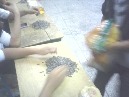 聚会开始了,图片上这是我的同学正在开心的为我们分发这吃的,我们把课桌在教室围成了一个"D" 字形的大圈,方便节目的表演,我们有说有笑,自由的谈论着,伏老师发言,总结了在校我们的优点与不足,我们细心的听着,当着文明的听众。