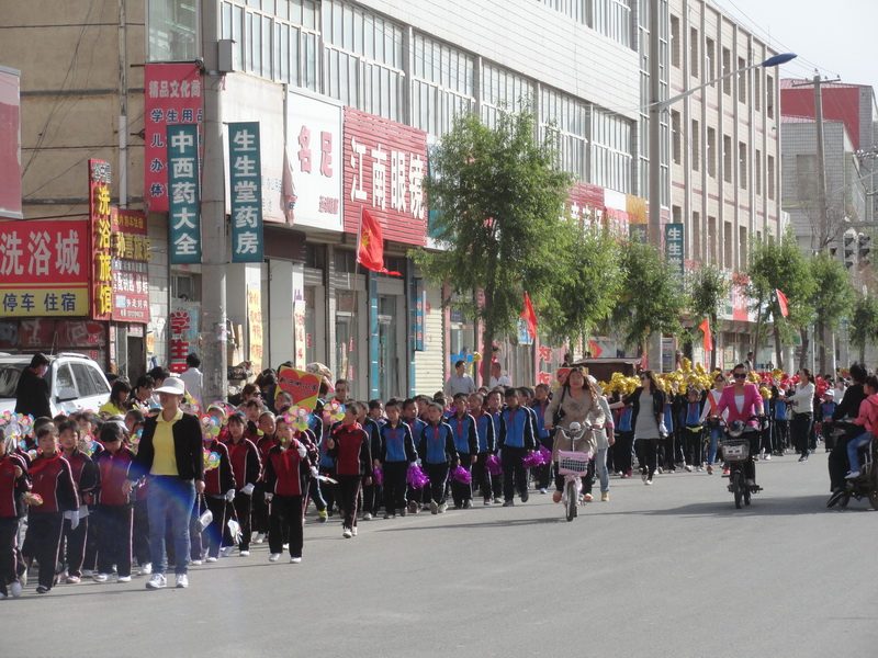早早地来到了学校,8:00整,游行开始了,绕大街走一圈,差不多有十多里地,经过一个多小时的游行,回来时已经精疲力竭了。但中间又进行了献红领巾和欢迎领导之类的活动,我休息的也差不多了,这为以后的比赛积聚了不少能量。