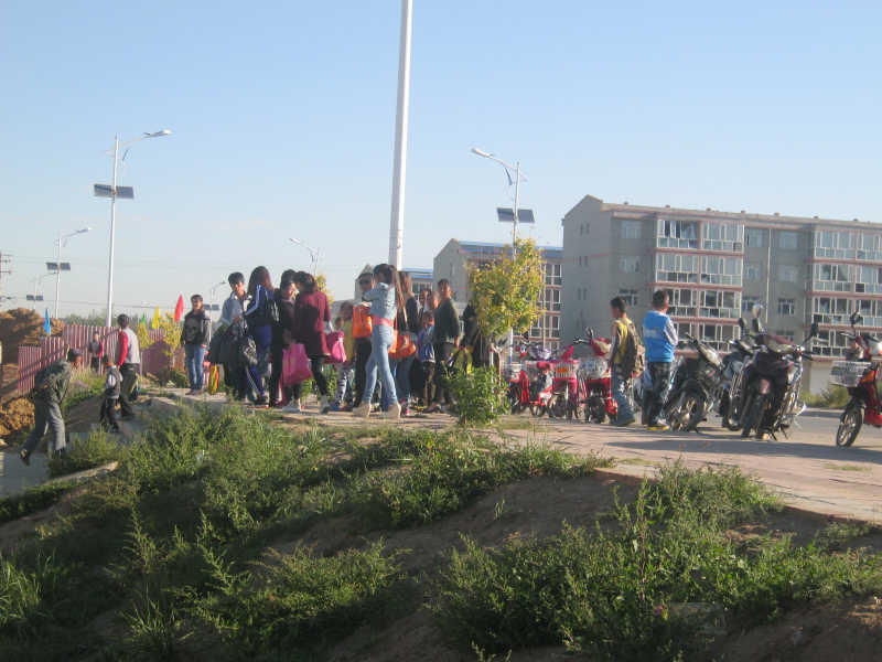 校门外,真是人山人海,有小轿车、摩托车,还有自行车,但大多数的是步行送孩子上学的人们,大人们亲切地看着自己的孩子欢蹦乱跳的走入学校。整个校园充满了欢声笑语。