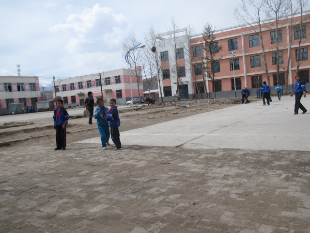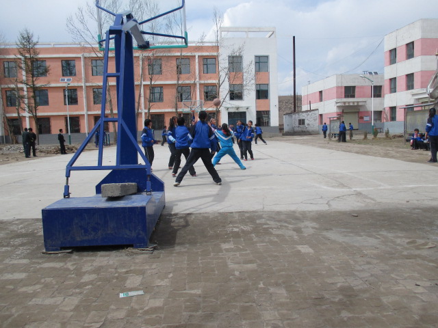 以前从被封的铁门往里走,左右有两栋楼——老师宿舍楼(旧)和女生宿舍楼,老师宿舍旁是一到三年级学生学习的天地,在旁边又是一栋楼,已经旧废放一些体育器材,紧靠的是刚建好的老师宿舍楼,又紧靠男生宿舍楼,又紧靠学生食堂,食堂旁边是女生宿舍楼,这几座楼大致围成一个长方形,中间有花园分成左右两块,两块各有一个篮球场,从这里出来就是与放乒乓球台的操场相邻,相互之间左右各有台阶。