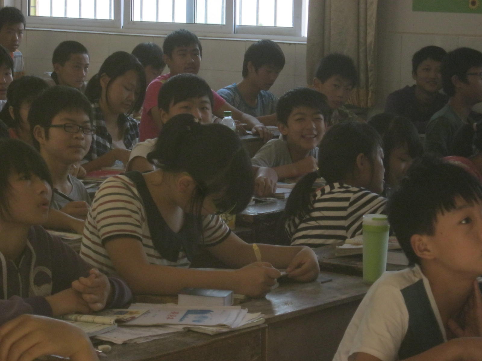 初三的我们搬进了三楼的第一间教室,门上方的的牌子鲜明的印着"九年级"三个大字。本来宽敞的教室却因为挤进来的六十多名学生,突然变得狭窄起来。同学里多了一些陌生的脸庞,却少了一些熟悉的人。上课就规规矩矩的坐在下面听老师讲课,偶尔听见同学们窃窃私语,内容不过就是"几点了"还有多久?"........