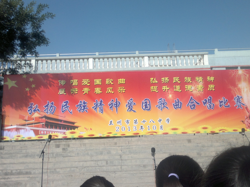 "爱我中华,健儿奋起步伐;爱我中华;建设我们的国家······"趁着国庆喜气未尽,我们学校开展了弘扬民族精神爱国歌曲合唱比赛,全校高一高二共二十个班,都参加了这次比赛。大概在国庆放假之前,我们就已经开始准备了,放假回来之后,我们又好好准备了一番,现在让我们上台,说不上胜券在握,但也是信心满满的,我们就怀着激动的心情等待着演出的开始。
