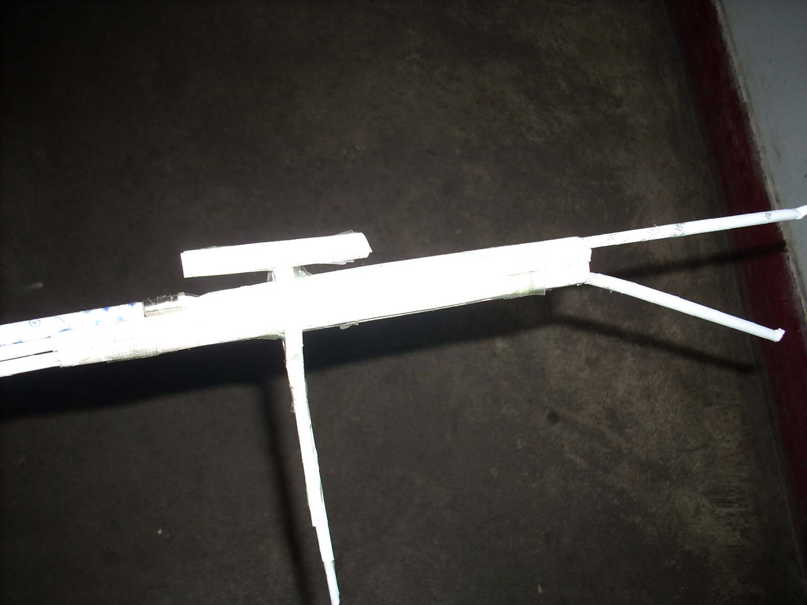 近期内没有希望买到枪,我便自己做枪。我用纸卷成各种长度的小筒,卷得越紧越好,这样才能坚硬如枪管。再把纸筒用胶带纸连结在一起,制成各式机枪。你可别小看它,在我眼里它也能架在高坡上,扫射一大片的鬼子。