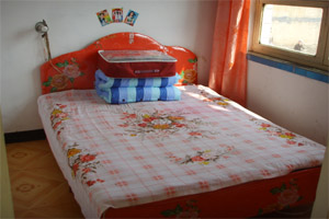 主房除客厅外东西各套两间卧室。这几间卧室虽然小一些,但是都是紧凑和干净,墙上装饰着一些很温馨的图案,这样让异地旅游的游客也能感受到家的感觉。西边的套间里还盘有北方居民住得土炕,这样主要是为了满足不同游客的住房需求,和住房习惯。不过,也是为了给一些来自南方或者国外的游客朋友提供感受别样居住环境的机会。