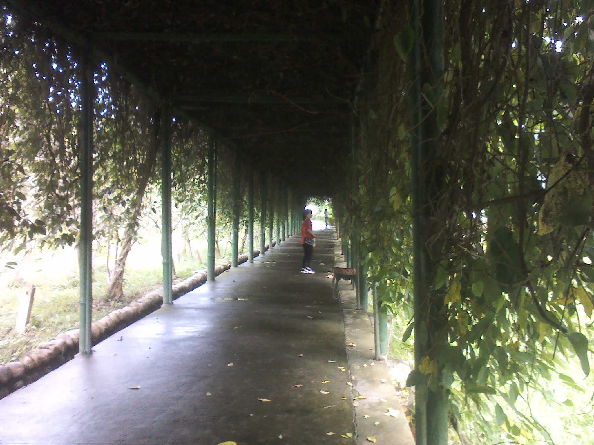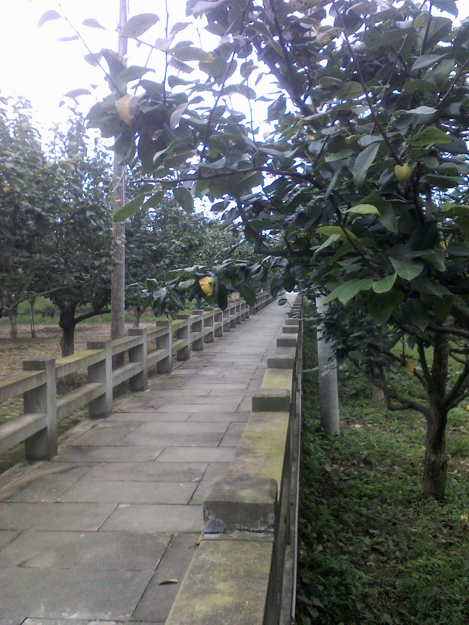 在回去的途中,我们又经过了一个长廊,长廊也不是很宽,也不是很窄,总之能经过两个人左右。长廊的两边长满了梨树,一颗颗的梨树长在土地里,梨树上长着几颗梨子,梨子用包装纸装了起来,不让蜂蜜吃它的果肉。就这样的瞎逛,逛着逛着就到了大门口,我们就这样走出去了。