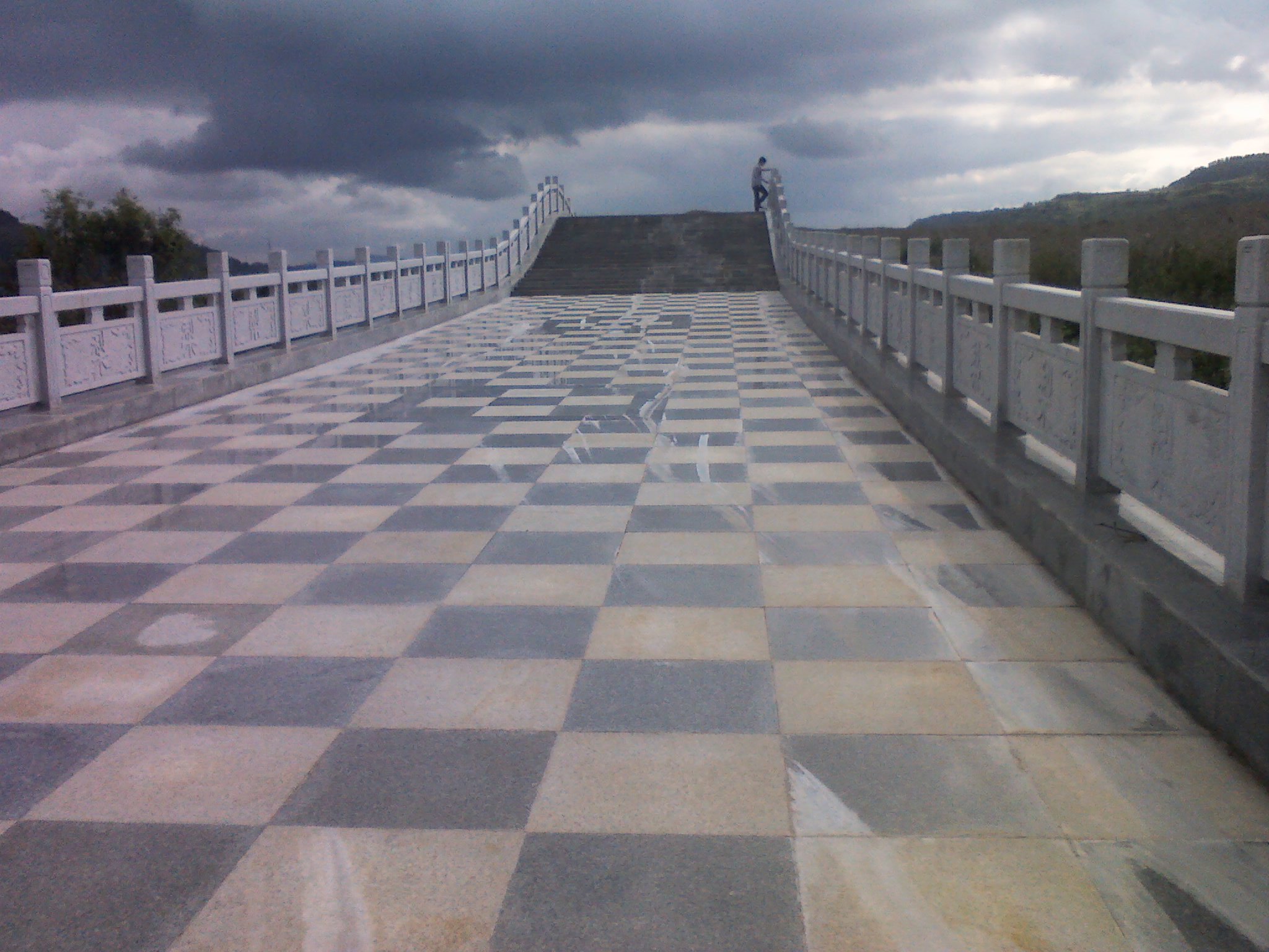 接下来,我们慢慢地走着就到了一座桥梁上,那座桥坐落在一条小河的上面,桥下的水湍急的流着,不着流向何方。可是,你说它深也不深,说它浅也不是很浅,总之还能看见水底的石头,小河的两边都是茂密的大树,当我站在桥上可以看见梨博园里很多的梨树。时间慢慢地流过,我们也该走回去了。