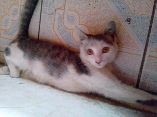 喵酱是我家喂养的一只大肥猫。最初收养它时,瘦弱无力的身子似乎随时都可能被风吹到。两眼空洞无神,毛发也乱糟糟的,弱弱的躲在我家的屋檐下。看到靠近的我高兴的低喵了两声,很是惹人怜惜!心慈的我便决定收留它。在婆婆和我的精心喂养下,它的毛发越来越有光泽了,两只铜铃般的眼睛也越来越有神了。瘦弱的小身体也慢慢的长的圆滚滚的了!也愈发的讨人喜欢了!