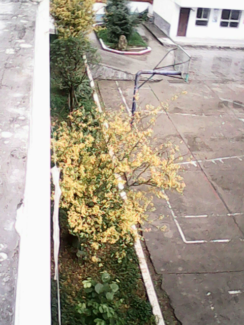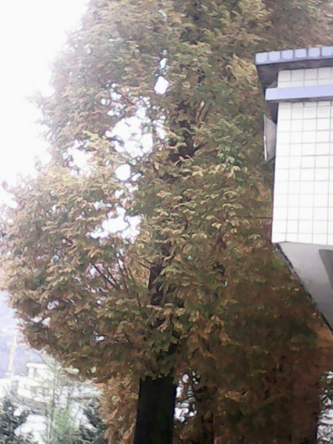 秋天来了,万物都慢慢变黄了。校园里的小树都已失去生机,只有几棵四季常青的树依然在那焕发生机。