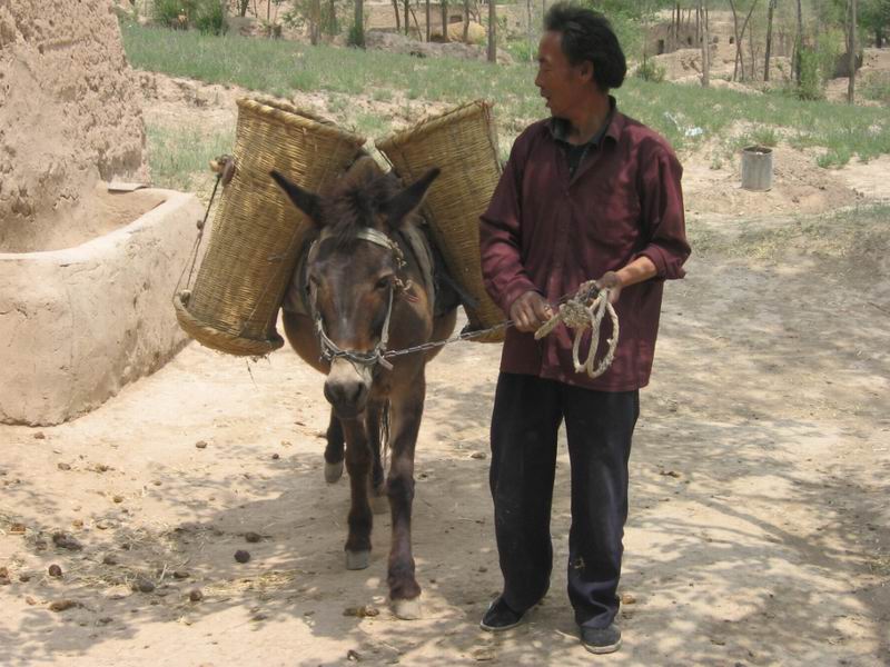 后来,家里有了骡子,父母挑担的重任就落到了骡子身上。在夏季我们就用骡子驮水、驮麦子,但骡子最重要的任务就是驮粪。每次在骡子身上驾上两个粪筐,再把粪用铁锹装进粪筐里,我们就拉着骡子到地里压粪。