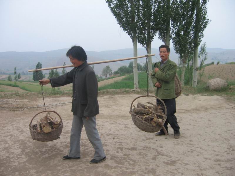 以前,家里很穷。没有运输工具,只有靠母亲用笼子担,父亲用背兜背。