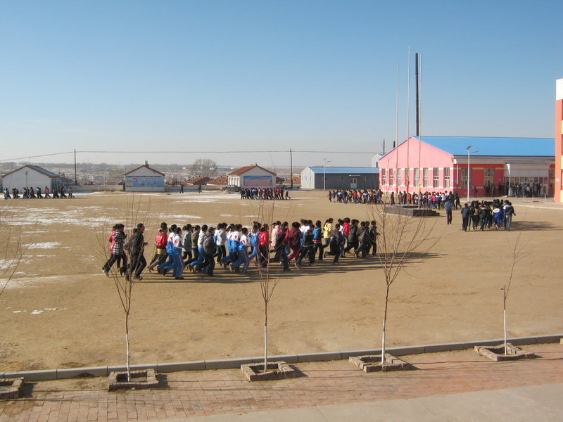 听:"放马金鞍,为我一班","斗志如火,超越自我","竞争时代,一班最帅"。洪亮的口号喊出每一人的斗志,加强了每一人的社会责任感,为了给集体赢得荣誉,为了在比赛中赢得好的名次,同学们忍着寒冷的风的袭击,单薄的衣服禁不住风的诱惑,左右摇摆,脸都冻得红彤彤的,像树上的果子一般,但我们仍然坚定地练习,每一个动作体现出的都是深深的热爱集体之情,我们也便成了寒风中接受洗礼的,不屈不挠的劲松!那样的风,那样的天,那样的我们成了最亮丽的风景线……