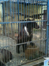 小时候,一直希望跟着爸爸妈妈去动物园里玩,去看看那些只能在电视里看却不能亲自接触的动物,我很喜欢那些活泼可爱的小动物。 这只大熊,脖子里有一条月亮型的白色条纹,很漂亮,他们喜欢吃甜东西。