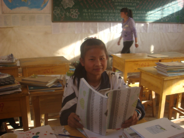 "«山中杂诗»,一二……"这是吴新慧的声音,她每天早上领着大家背诵。她是一个聪明、活泼的女生,她喜欢唱歌、跳舞。只是她很害羞,只要一唱歌,你就会发现她的脸上会渐渐地泛起红晕,一会儿脸蛋就"变色"了。不过,她害羞的样子也挺可爱的,像年画姥姥一样。