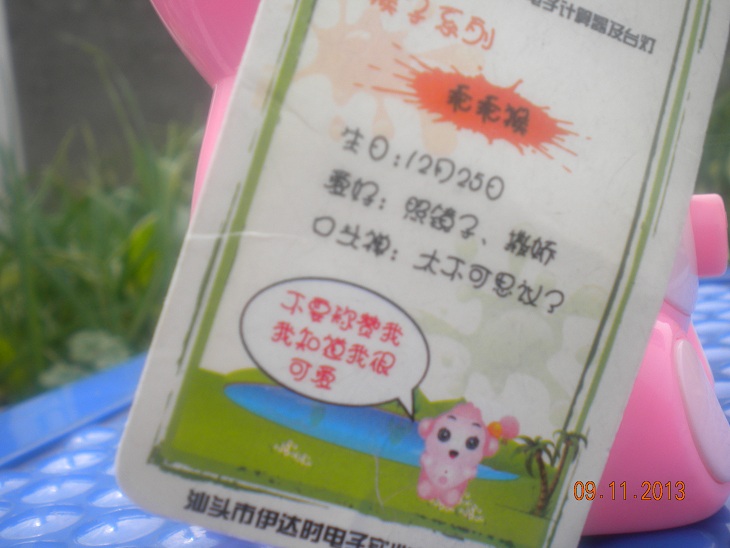 "乖乖猴"可不是我给它起的名字哦,看,它是有"身2份证"的,就在下面这张卡片上: 乖乖猴生日:12月25日 爱好:照镜子、撒娇 口头禅:太不可思议了 个人留言:…… 这些文字,我每一个都刻在心里,因为"乖乖猴"好孤独啊,就像我想妈妈时一样孤独。所以我会陪着它,同时它也陪着我度过了许多难忘时光。